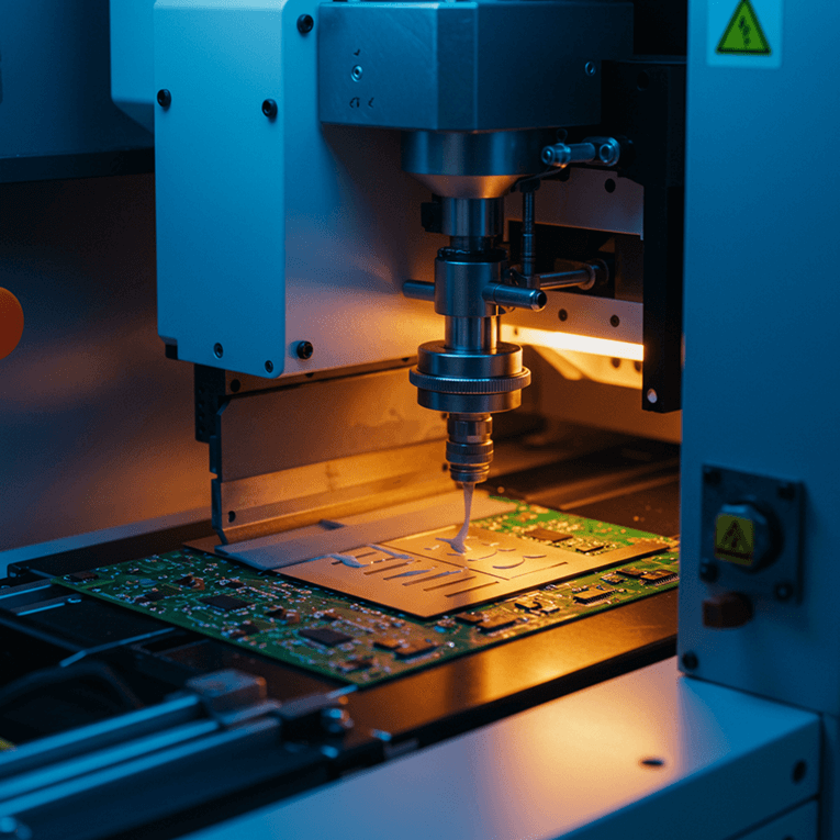 Qualidade desde o início. Garante a aplicação perfeita e uniforme da pasta de solda, etapa crucial para evitar falhas de contato.